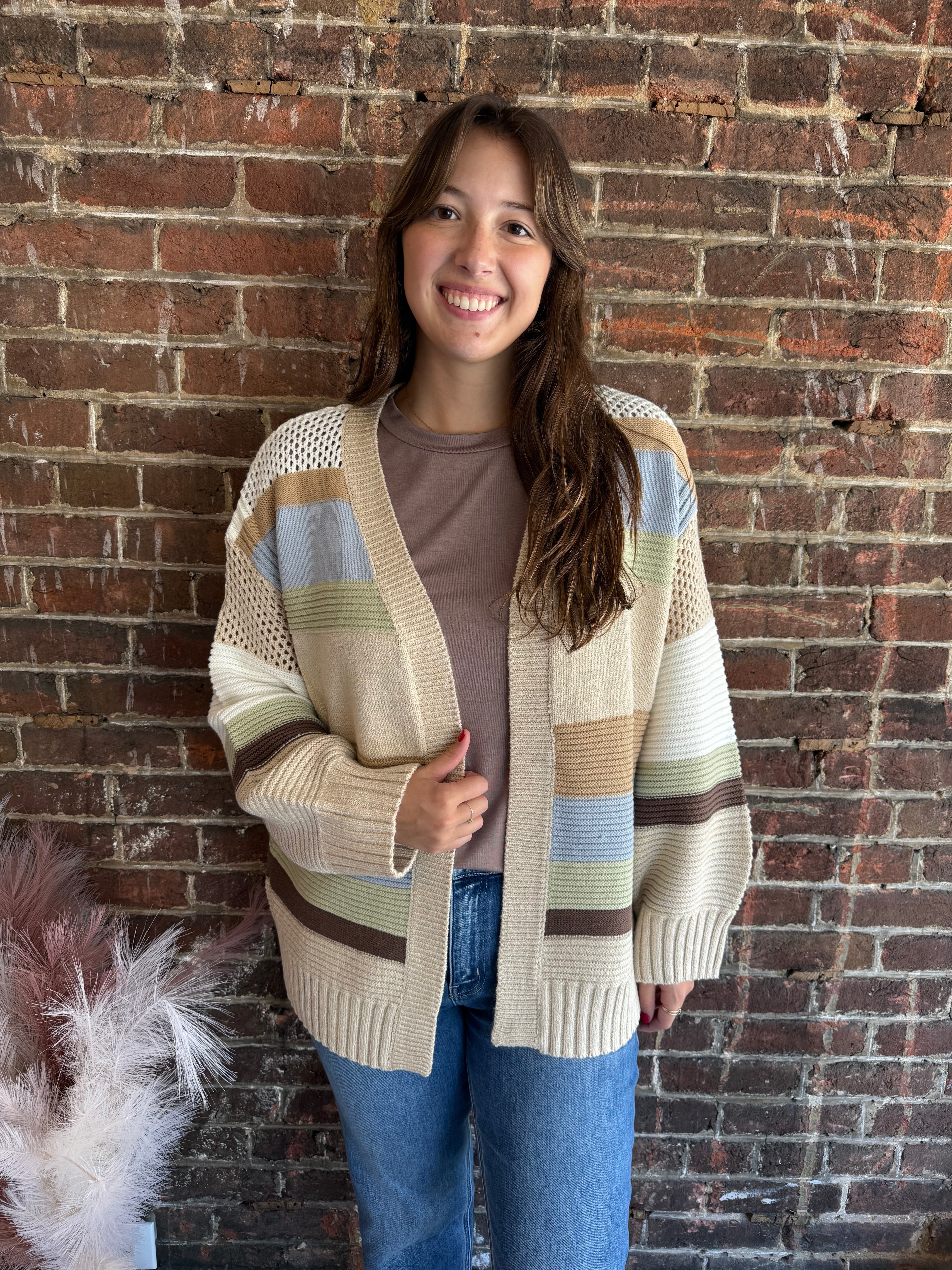 Wrap yourself in cozy charm with the Mabel Cardigan. Featuring a lively mix of colors and a delightful textured knit, this long sleeve piece adds a playful twist to any outfit. Perfect for layering on chilly days, it brings warmth and personality to your wardrobe with every wear.