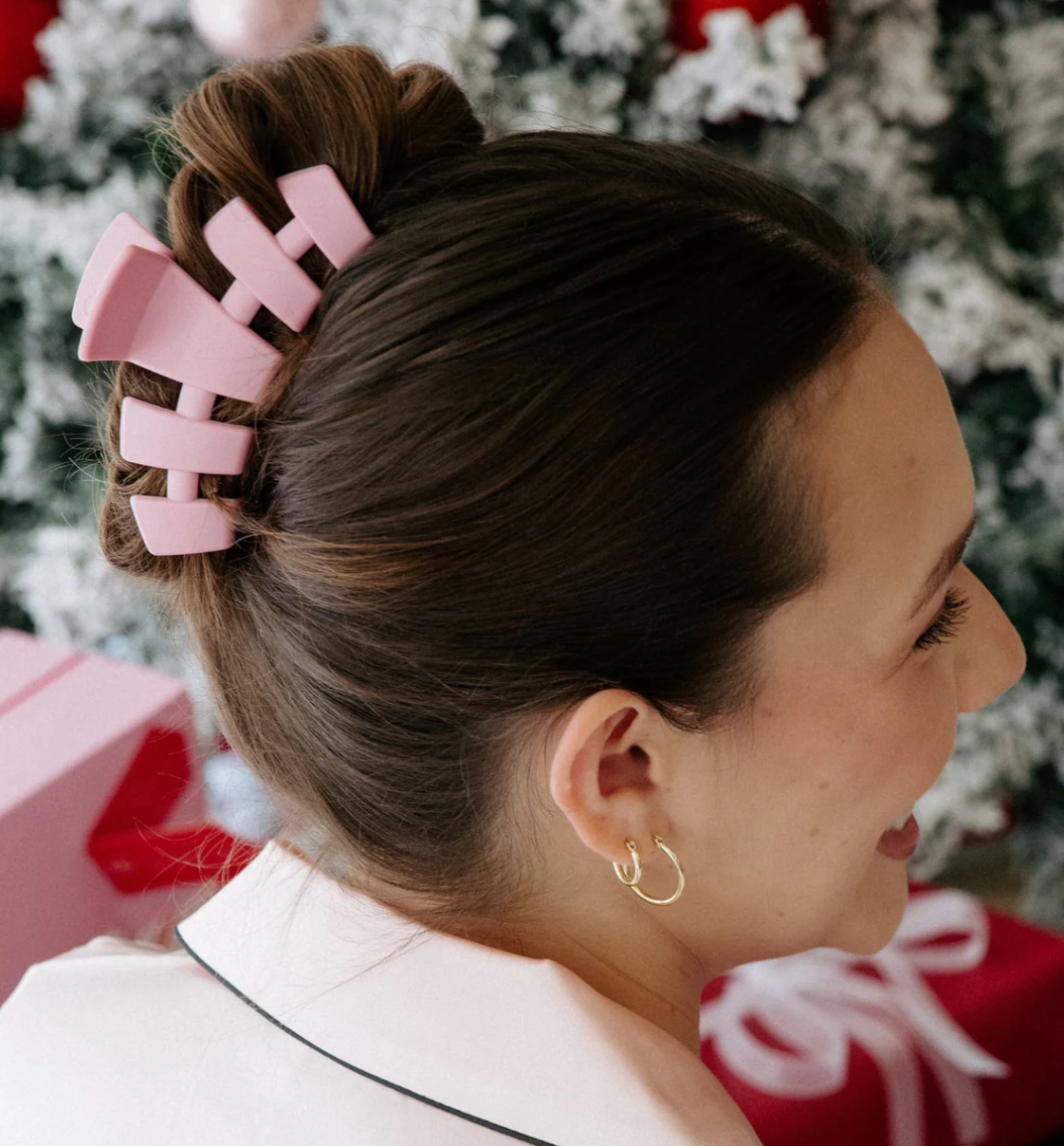 Say goodbye to breakable hair clips! We have perfected the hair tie and now have re-invented the clip. Meet the Classic Merry Pinkmas Large Claw Hair Clip in Matte Pink, crafted to elevate any hairstyle with the ideal blend of style and function.