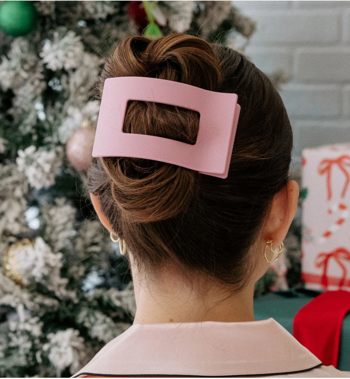 Lean back and relax - comfort just got a new shape. Introducing the TELETIES Merry Pinkmas Large Flat Rectangle Hair Clip in Matte Pink, the newest addition to our best-selling Flat Clip Collection. Joining the original Round and Square styles, this elevated rectangular design offers the same flat-back comfort and stronghold TELETIES is known for - now with a sleek, modern style.
