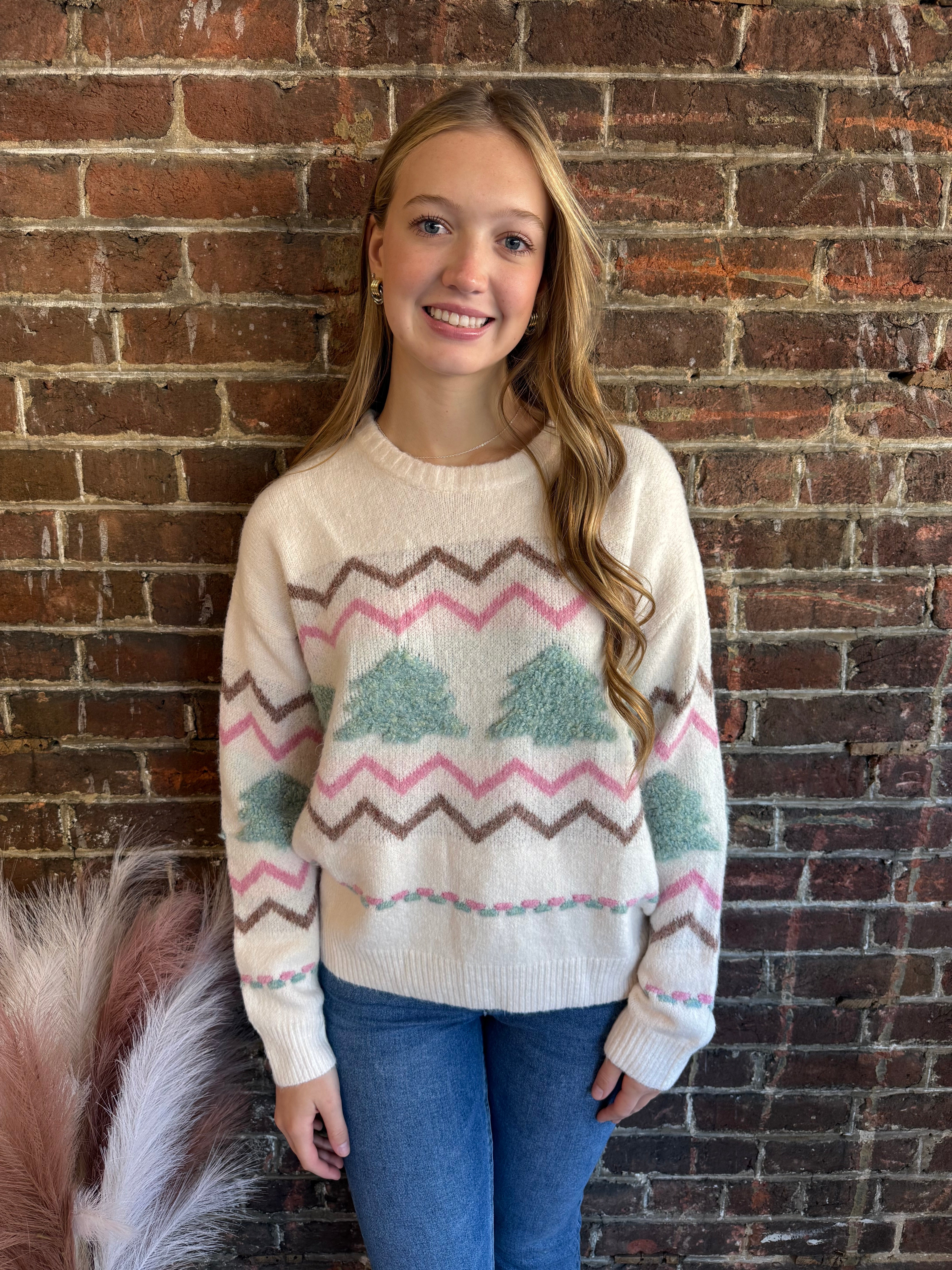 Get into the holiday spirit with this playful Tree Sweater Top! Featuring a cozy knit fabric adorned with a cheerful Christmas tree pattern, it’s perfect for festive gatherings or cozy winter days. Layer it up for warmth and a splash of seasonal fun wherever you go.