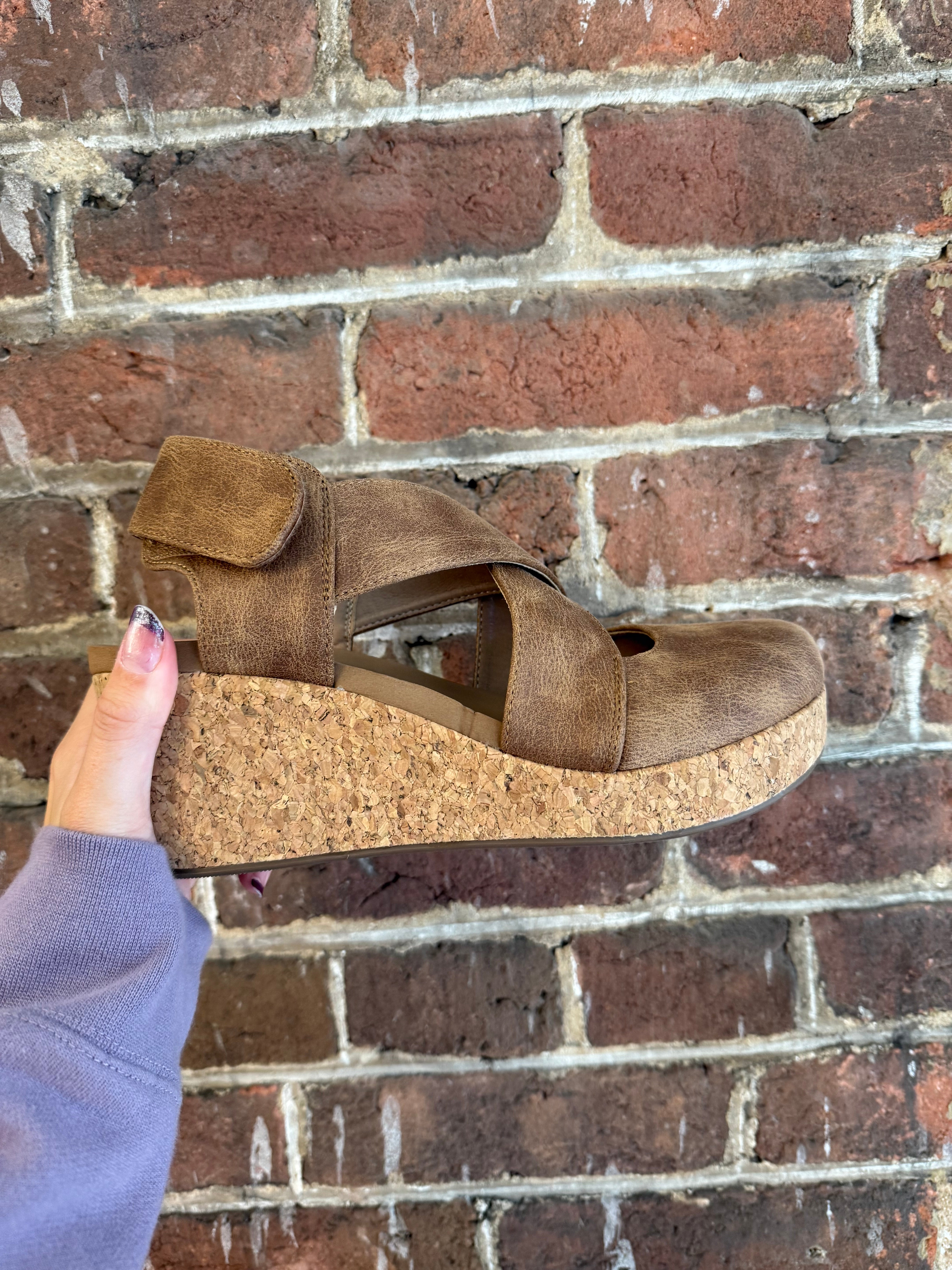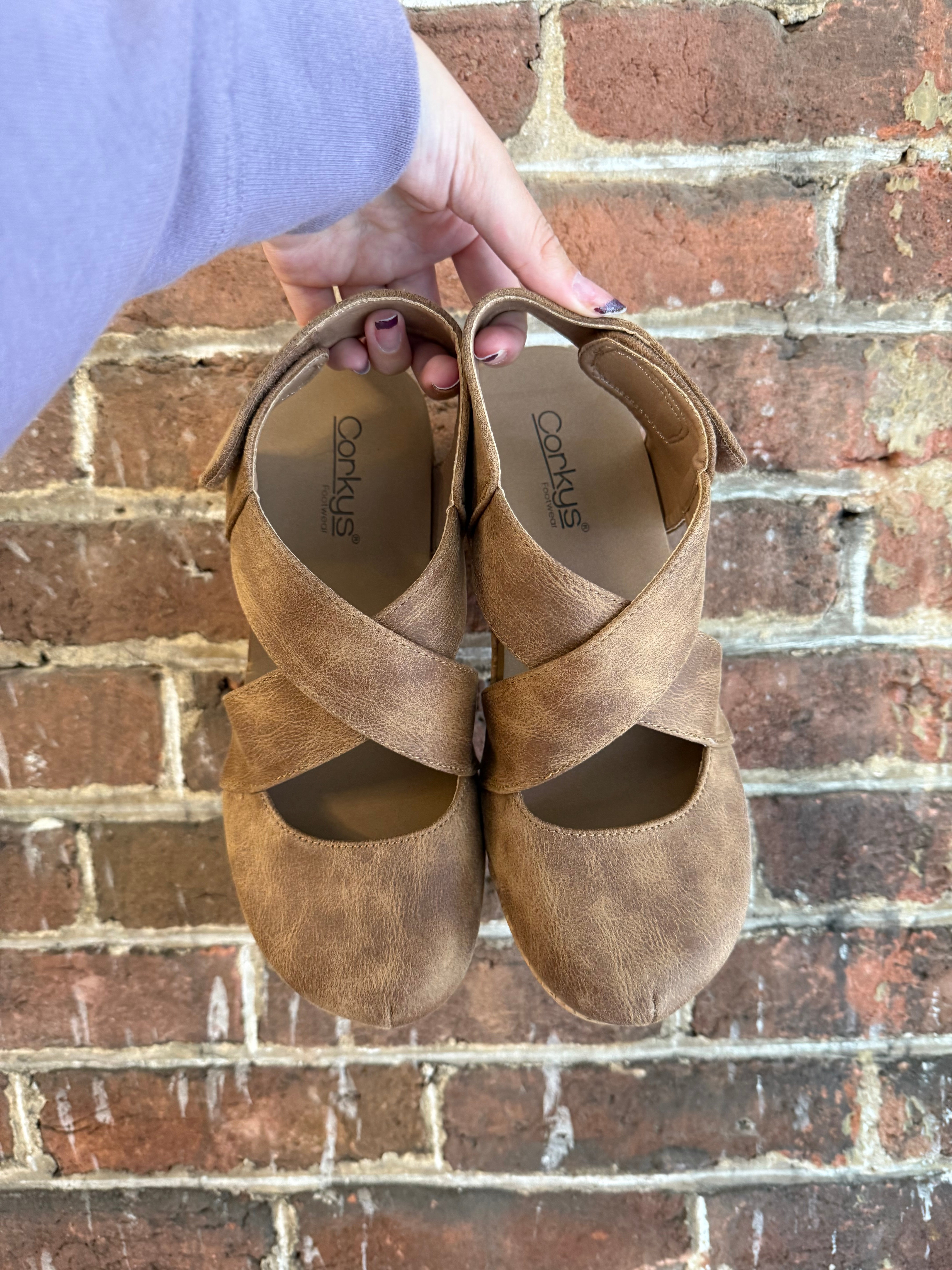 Step confidently in the Case Closed | Tan faux suede wedge, featuring a 2.5” heel and a 1” platform for added height without sacrificing comfort. The closed toe and cross strap upper provide secure support, while the back strap ensures a snug fit. Designed with Corkys comfort cushion, these shoes offer all-day wearability, making them perfect for both casual outings and dressier occasions. Elevate your style and comfort effortlessly with this versatile wedge.