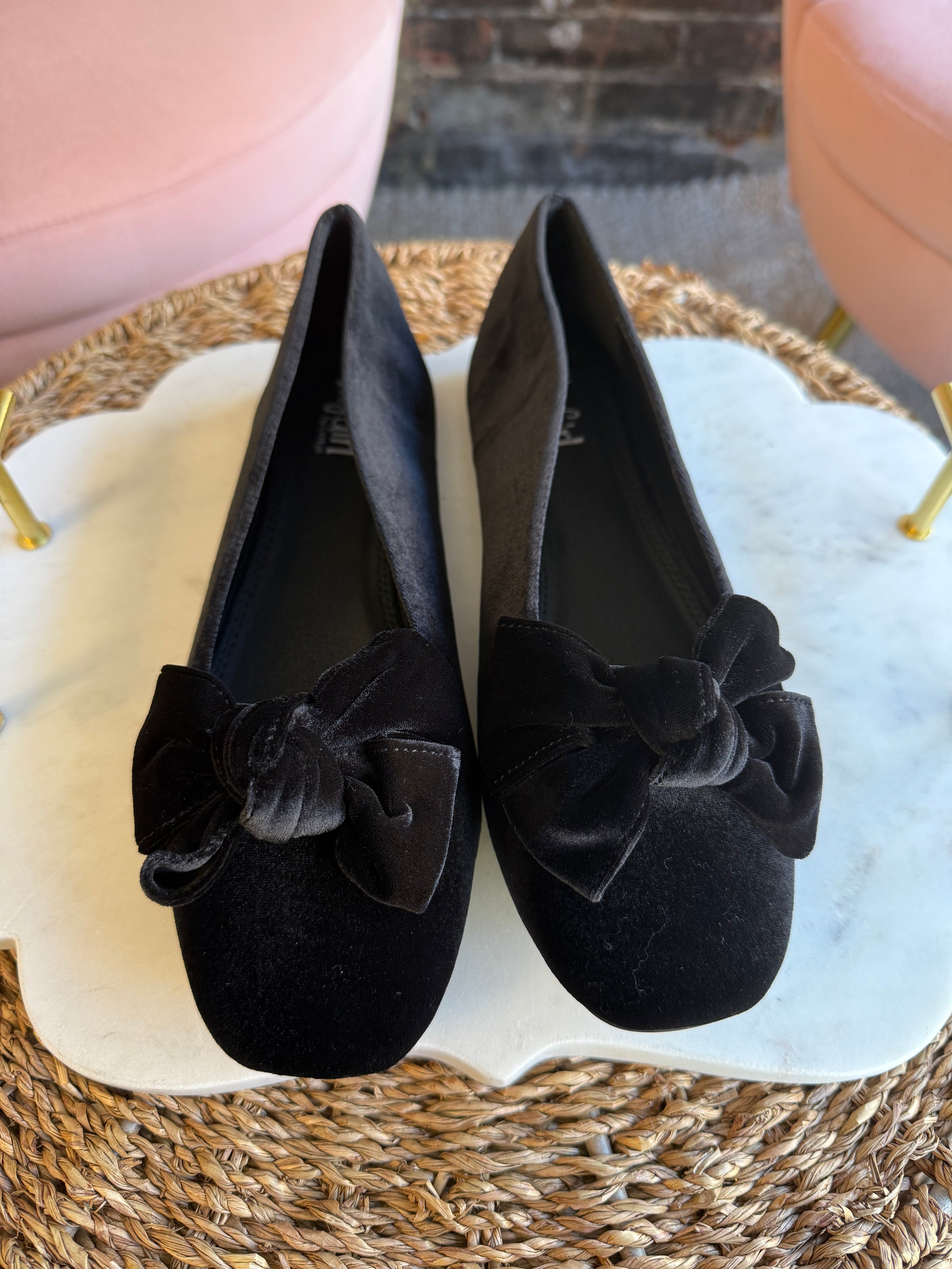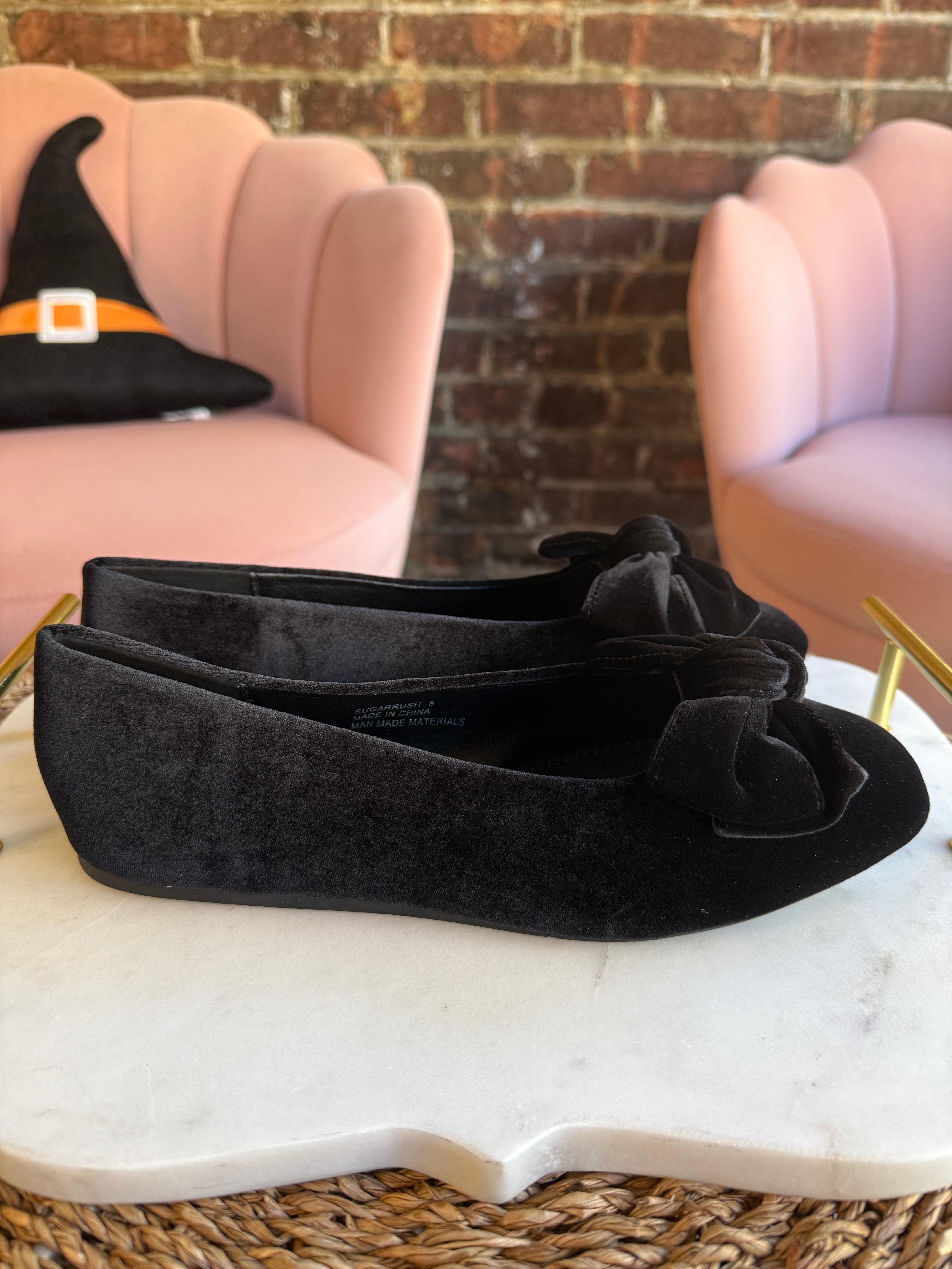 Elevate your holiday style with these Sugar Rush Ballet Flats crafted from luxurious black velvet. Perfectly on trend, they add a touch of elegance and comfort to any festive outfit. Whether you're celebrating at a party or enjoying a cozy night out, these flats combine chic design with all-day wearability.