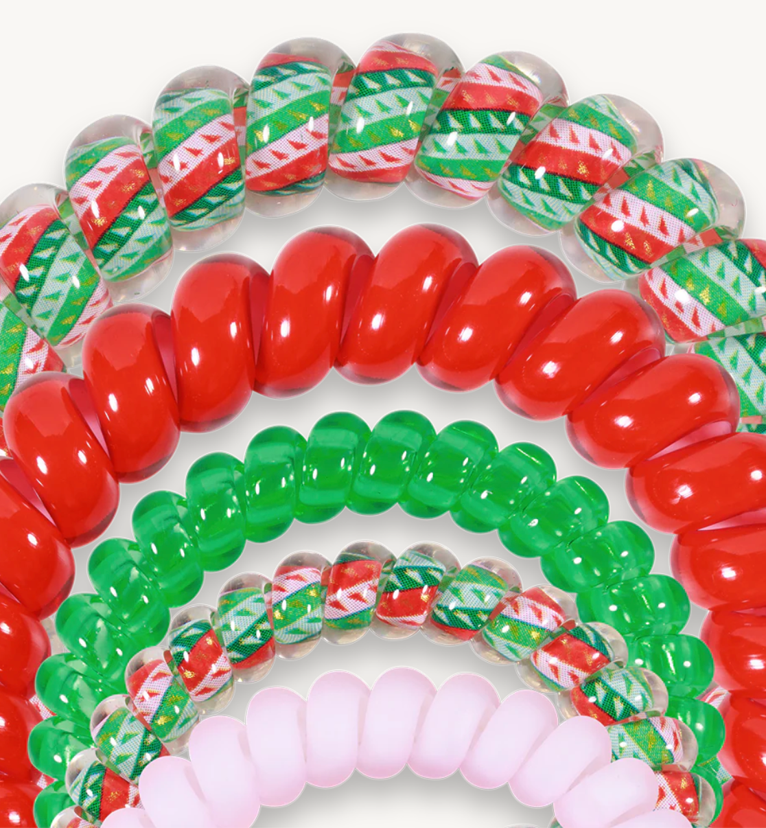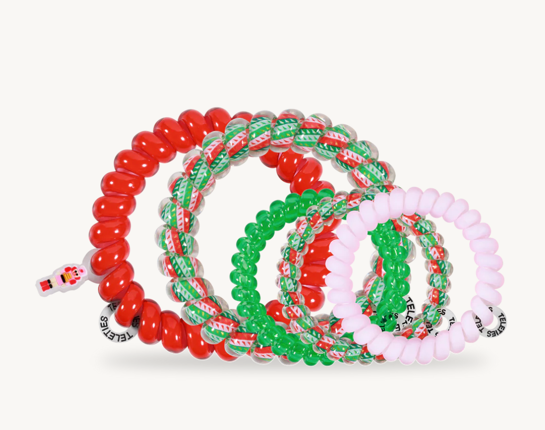 Hold your hair in place with ease and style! You Crack Me Up Mix Pack Hair Ties in Red, Green, and Pink offer a strong grip without damage, doubling as a stylish bracelet when not in use. Your new favorite hair essentials all year round.
