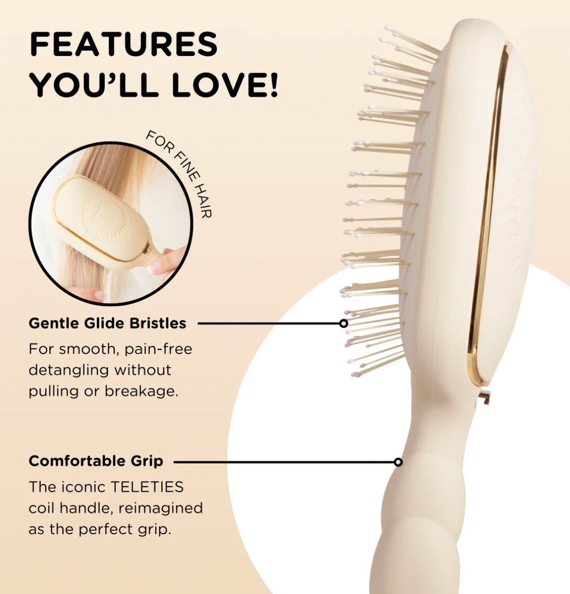 The Detangler Brush for fine hair in Tan is your go-to for smooth, pain-free styling. It easily works through knots without tugging or breaking delicate strands, making it the perfect detangling brush for fine hair.