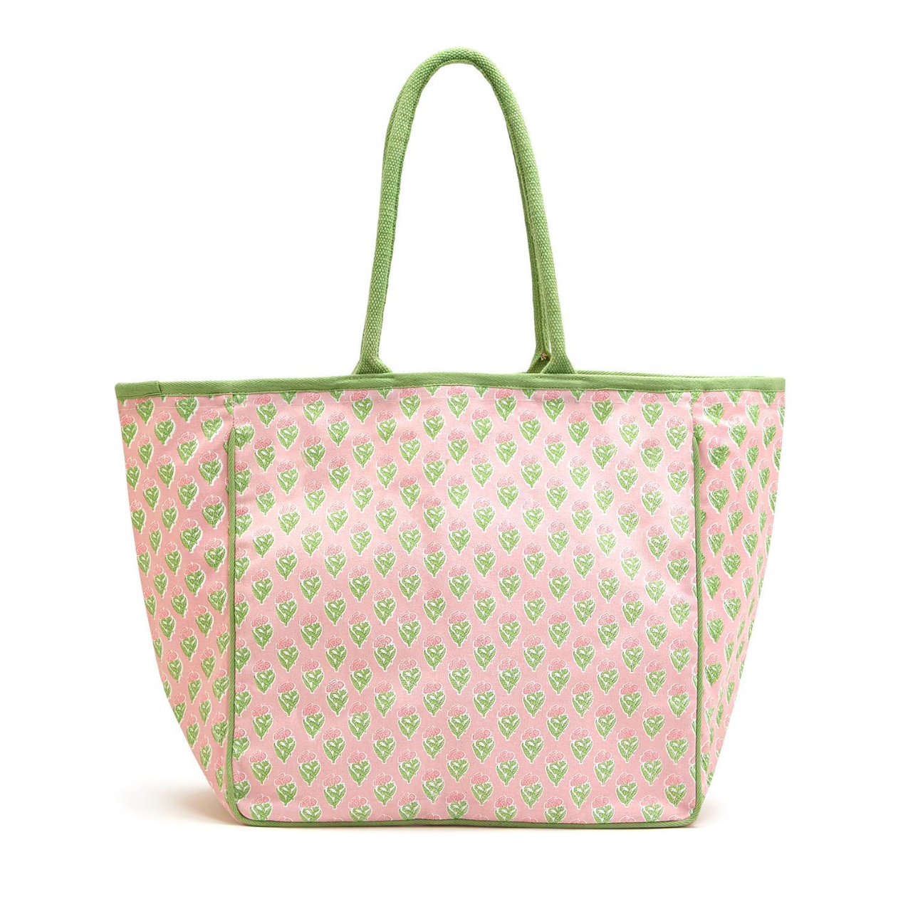 These large cotton canvas bags are perfect for your next beach vacation or walk around town. Hand printed on cotton canvas the bag is durable and lightweight.