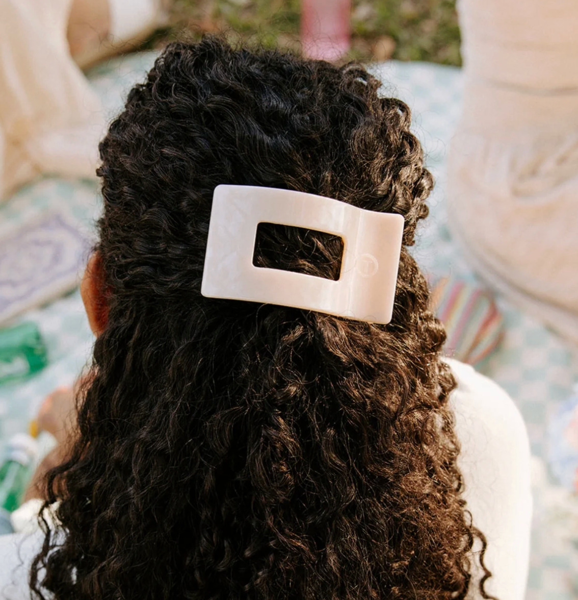 Lean back and relax - comfort just got a new shape. Introducing the TELETIES Soft Surf Medium Flat Rectangle Hair Clip in Tan, the newest addition to our best-selling Flat Clip Collection. Joining the original Round and Square styles, this elevated rectangular design offers the same flat-back comfort and stronghold TELETIES is known for - now with a sleek, modern style.
