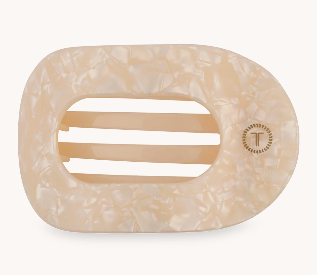 Lay flat and relax with the new TELETIES Soft Surf Small Flat Round Hair Clip in Tan. This hair clip is designed to allow you to lay back flat, do yoga, or sit comfortably in a seat with a headrest, and it is made with the same material that is nearly unbreakable.