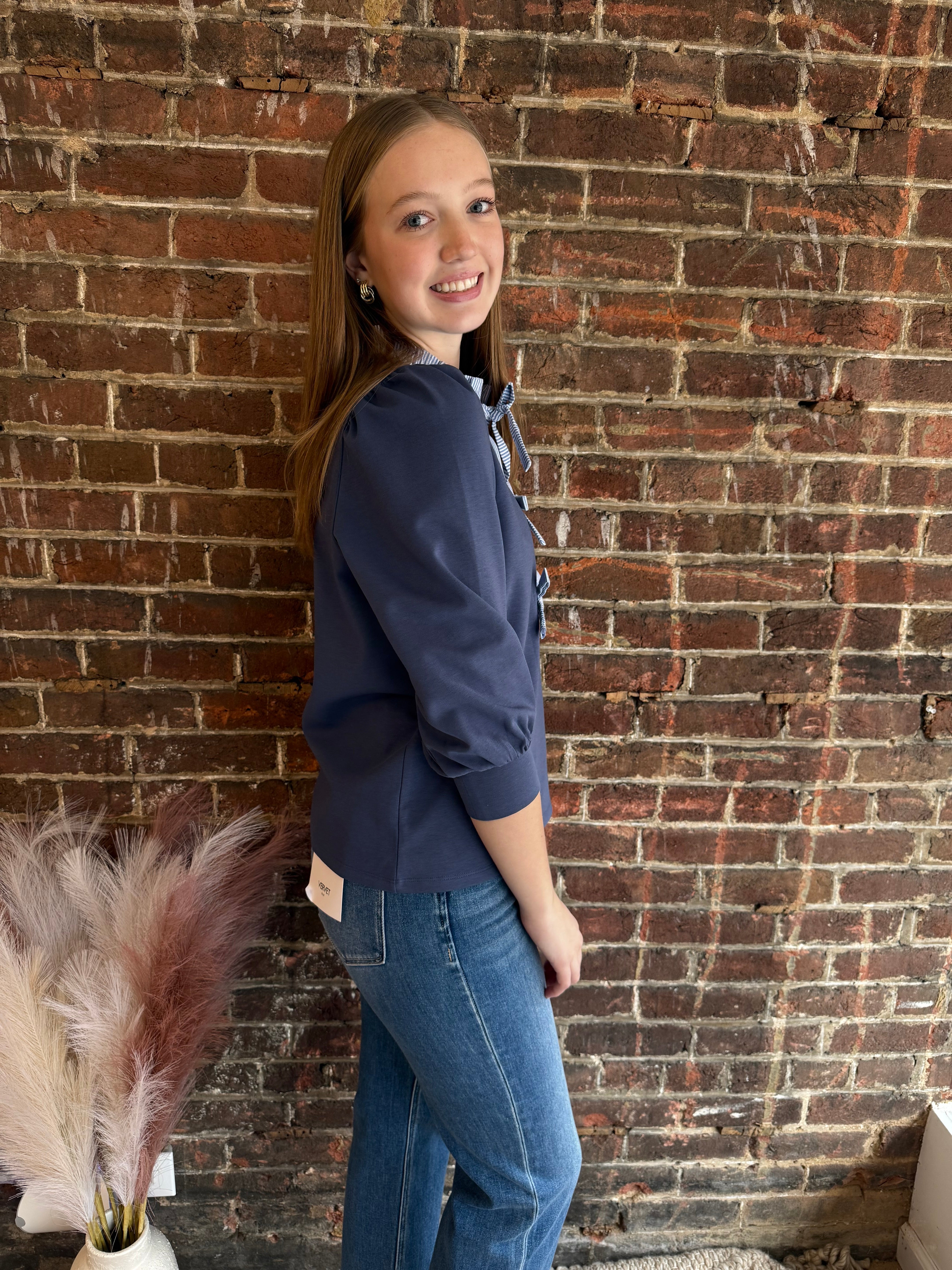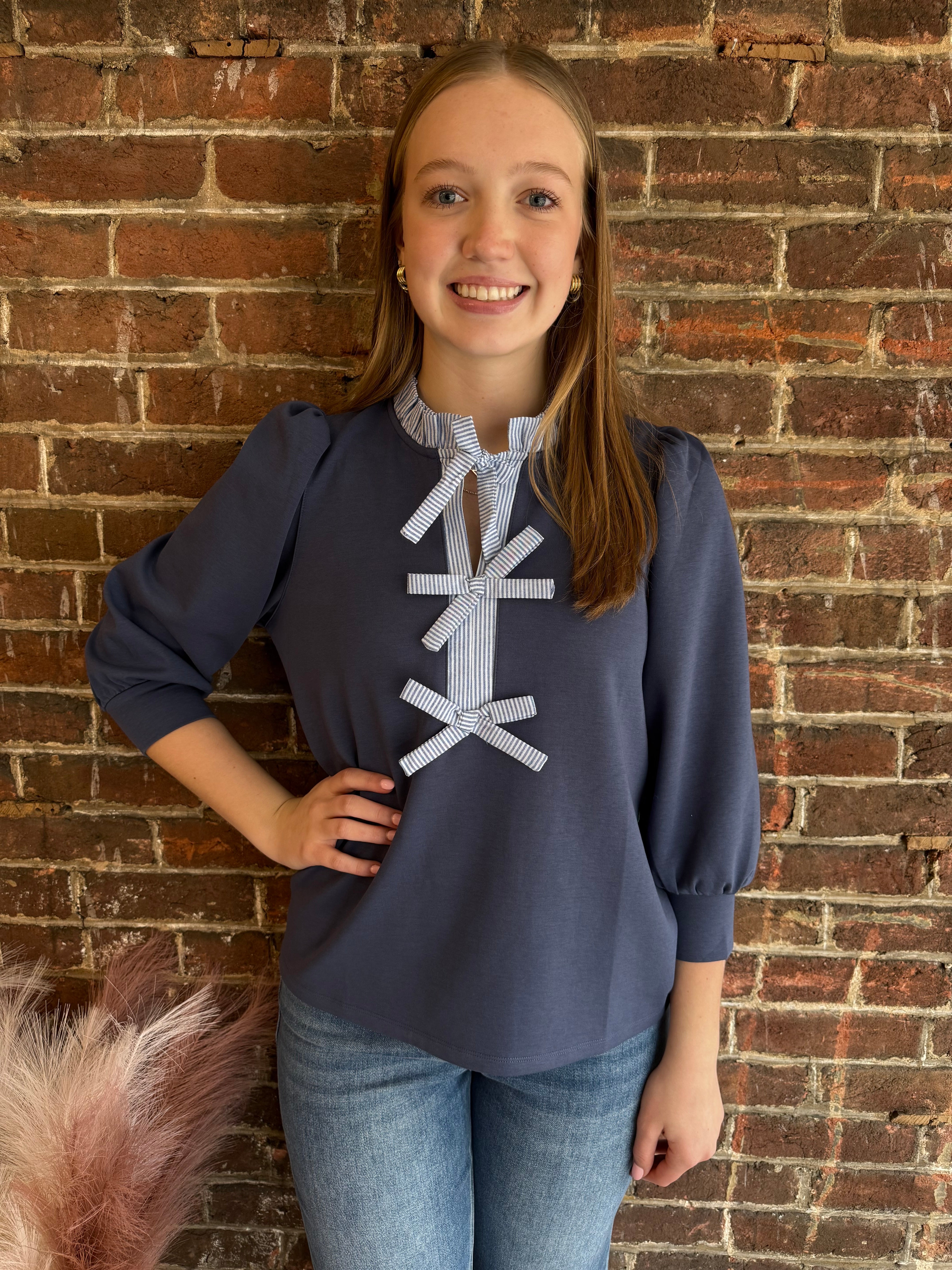 Add a fun, flirty touch to your wardrobe with the Daphne Top. Featuring charming puff sleeves and a delicate frill neck, this top is finished with sweet bow tie details that bring a playful vibe to any outfit. Perfect for adding a little whimsy to your day!