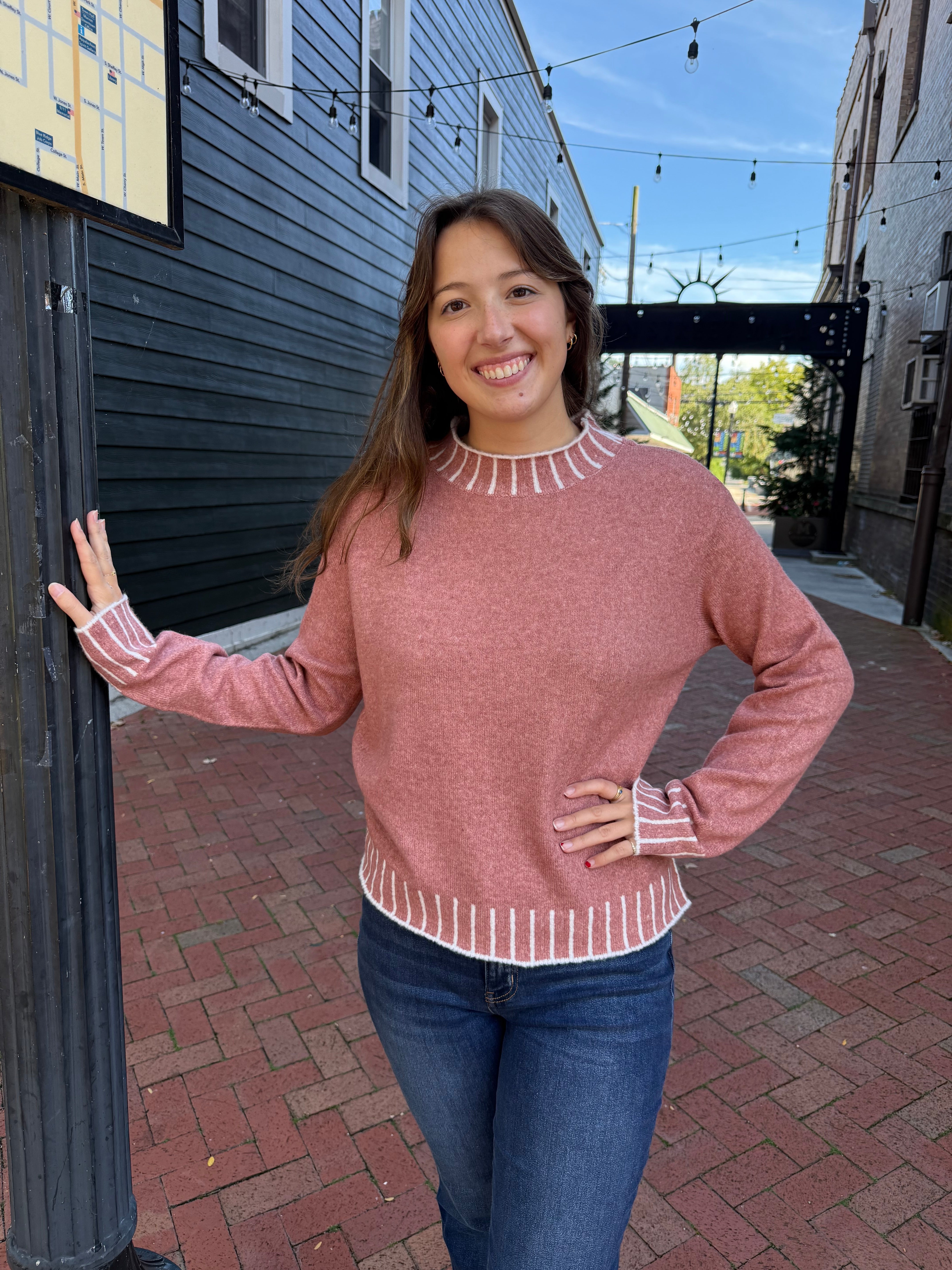 The Savannah Sweater is your new go-to for cozy vibes with a playful twist. Featuring charming blanket stitch detailing, a relaxed fit, and a flirty split hem, this pullover is perfect for layering or lounging in style. Slip it on for an effortlessly cool look that keeps comfort front and center.