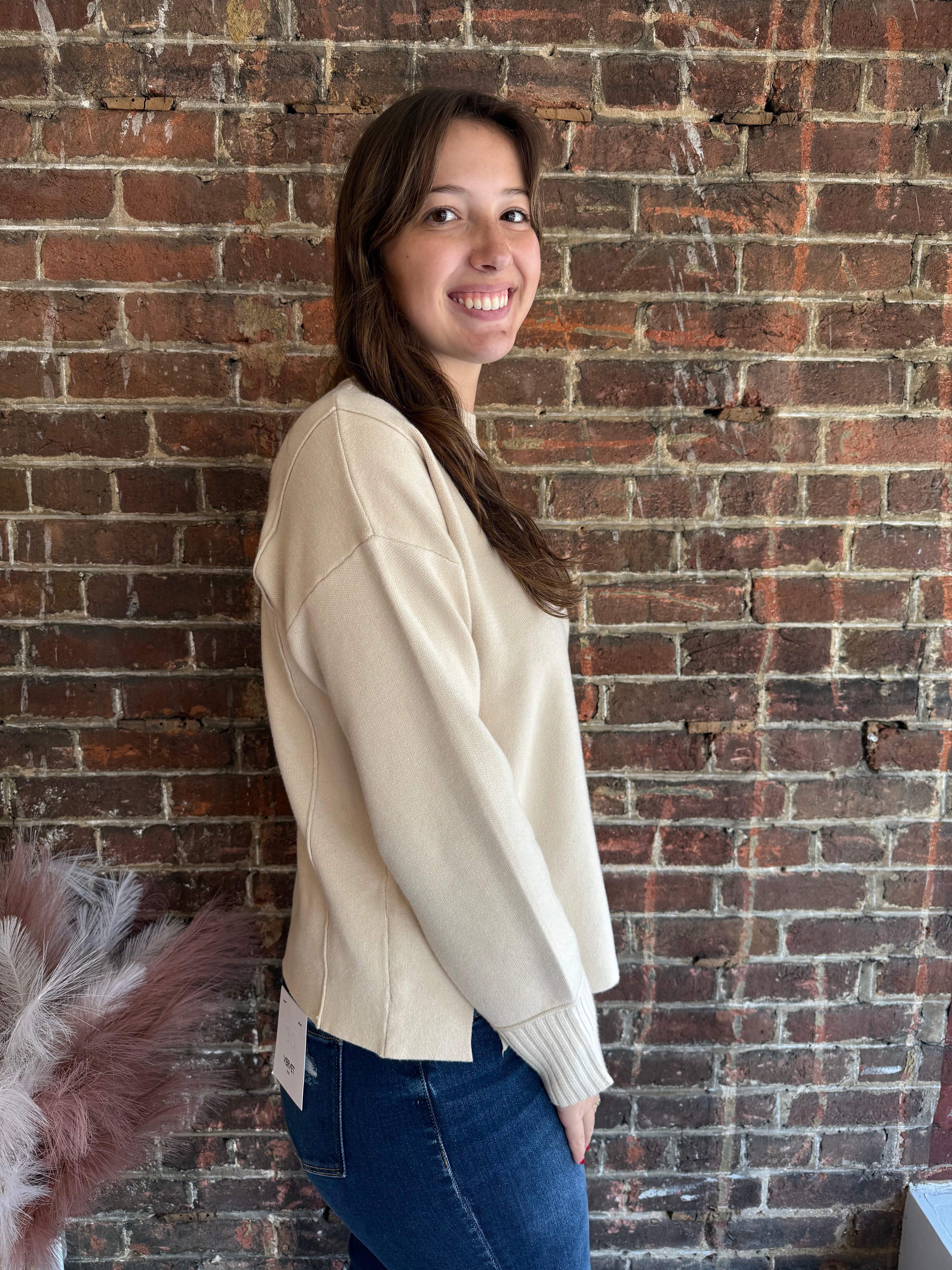 The Riley Sweater is your new cozy companion with a playful twist. Featuring a chic mock neck and long sleeves, this heavy solid pullover keeps you warm while the side slits add a hint of fun movement. Perfect for layering or rocking solo, it’s designed to keep you snug without sacrificing style. Get ready to turn heads while staying comfy all day long!