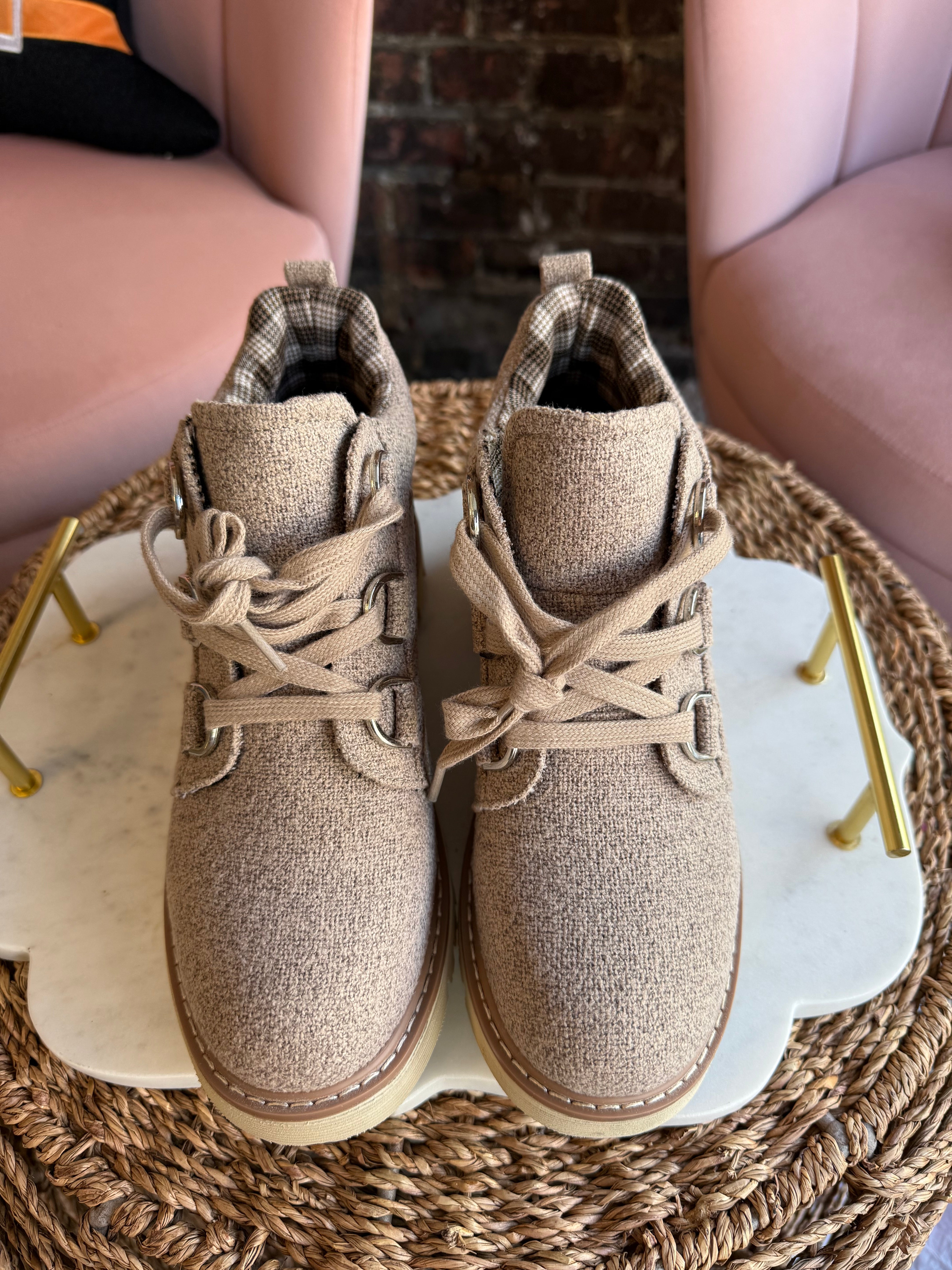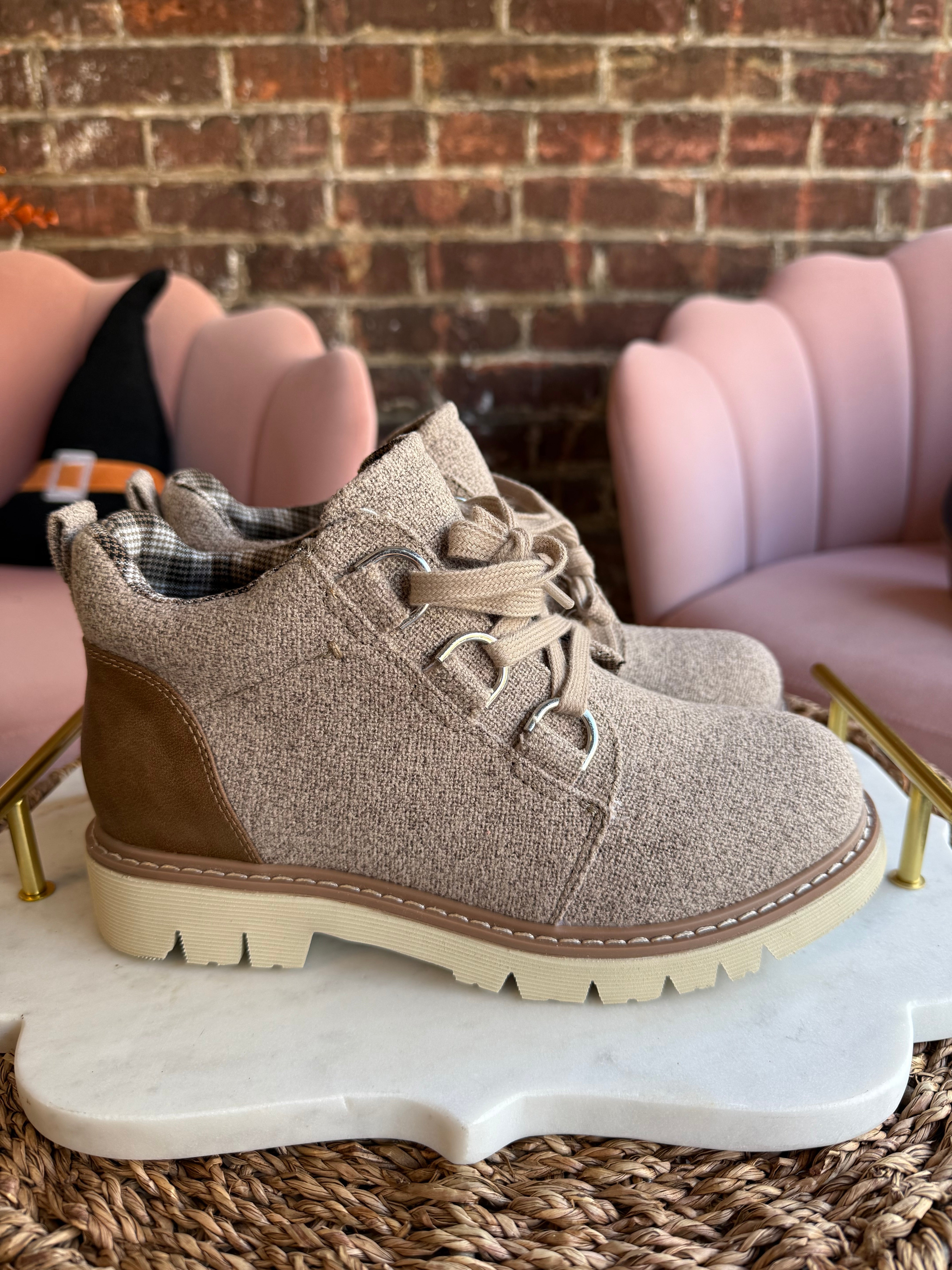 Experience cozy warmth and stylish comfort with the Campfire Boot in Sand. Crafted from beautiful materials, these boots feature a soft cushion for all-day comfort and delicate lace tie details that add a touch of charm. Designed to keep your feet warm throughout fall and winter, they are the perfect blend of function and fashion for chilly days.