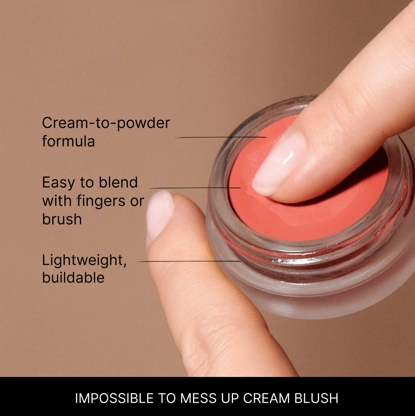Multi-purpose cream blush with a unique cream-to-powder formula that instantly blends into the skin. Loved even by people who don't wear makeup because it is so lightweight and natural-looking! Applies easily with fingers.