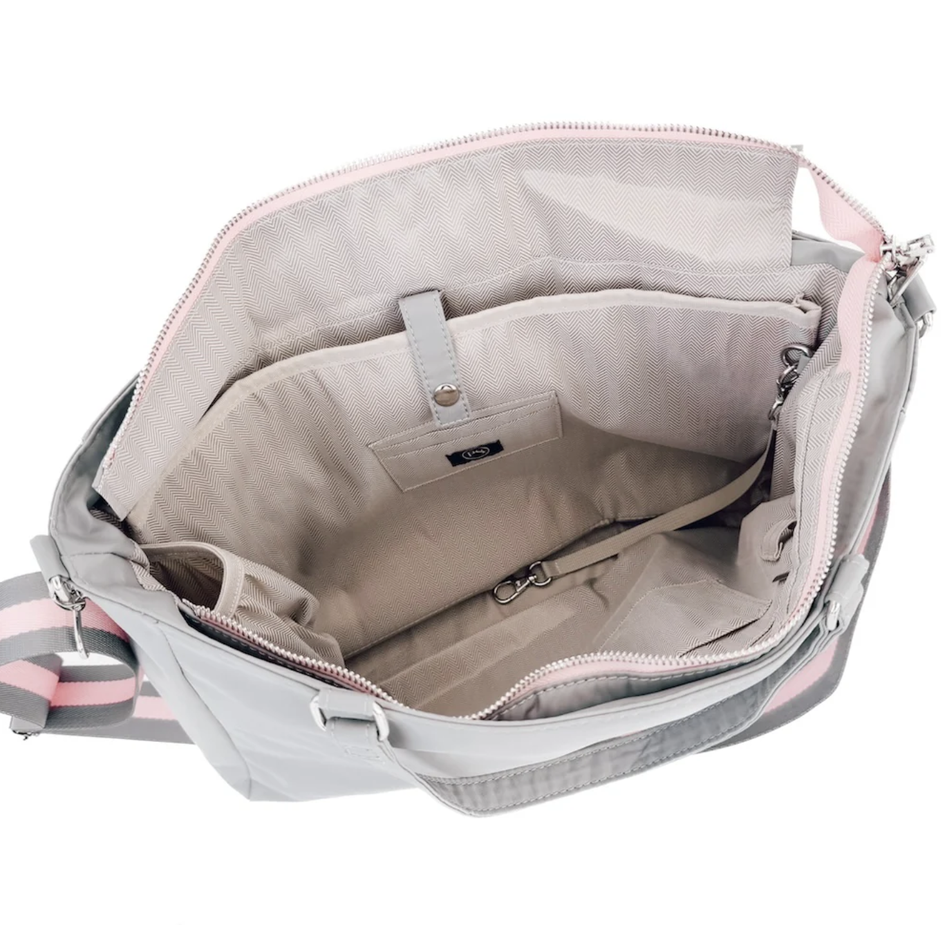 - Interior pockets: Laptop sleeve, water bottle pocket, key leash, 3 open pockets, 1 zipper pocket, pen or lipgloss holders!